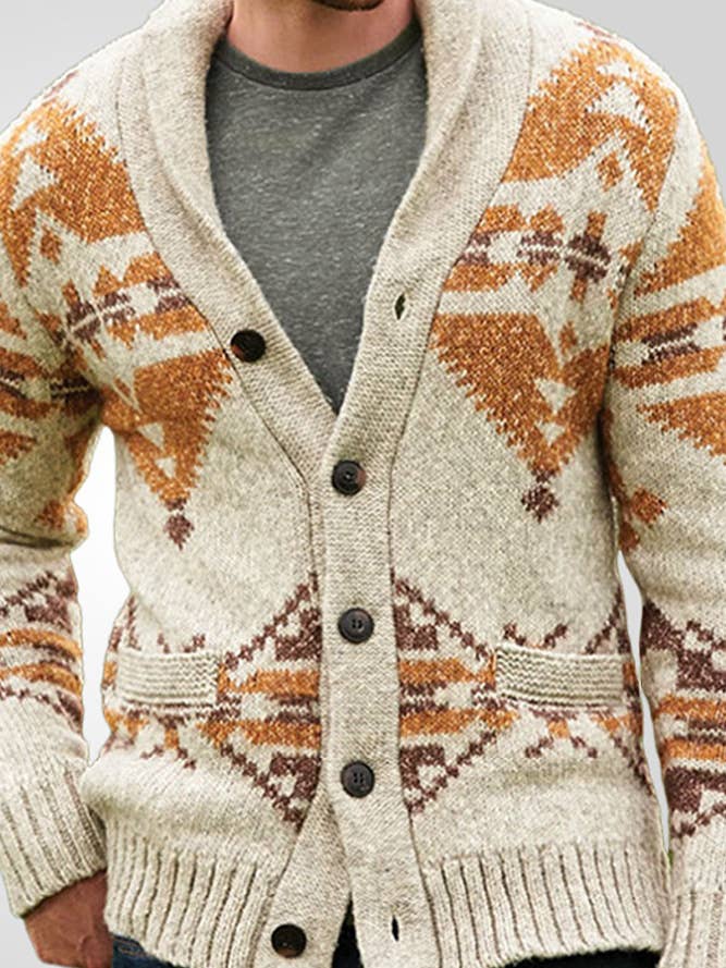 Sinransinya Men's Aztec Knitting Western Cardigan - Khaki