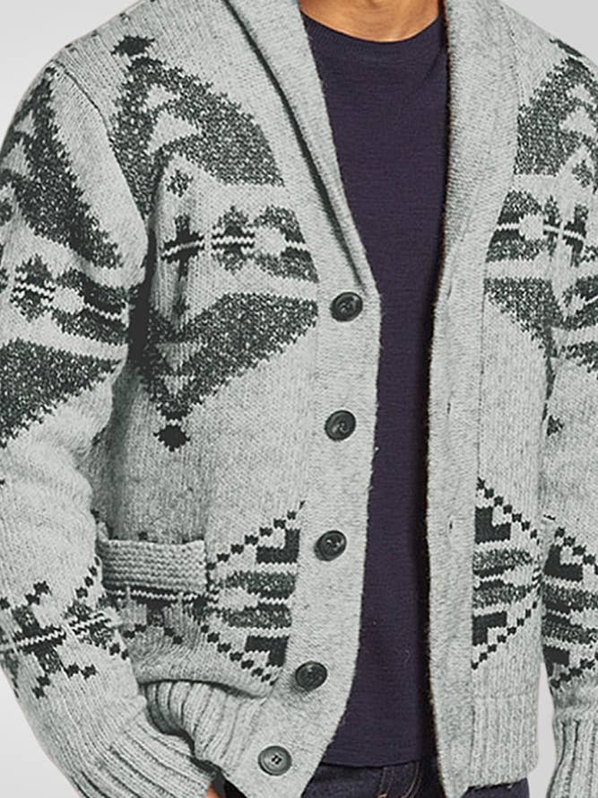 Sinransinya Men's Aztec Knitting Western Cardigan - Gray