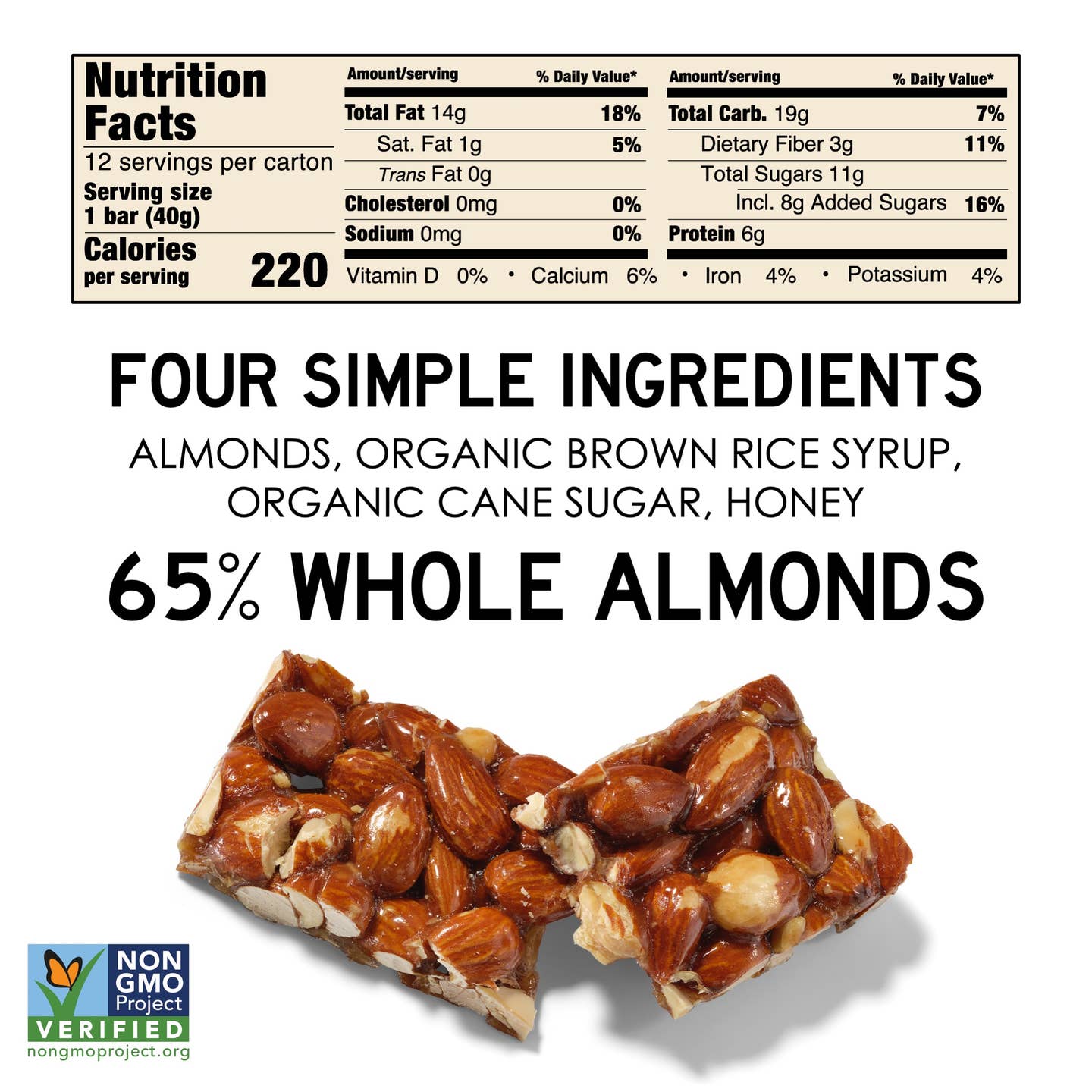 Sourced exclusively from Spain, our almonds are richer, softer and sweeter in flavor. We love that they are mostly irrigated with rainwater, so less of a drain on natural resources than the ones grown in the USA. Our crunchy almond bars have only four ingredients and are 65% whole almonds. The perfect balance of nutty and sweet.