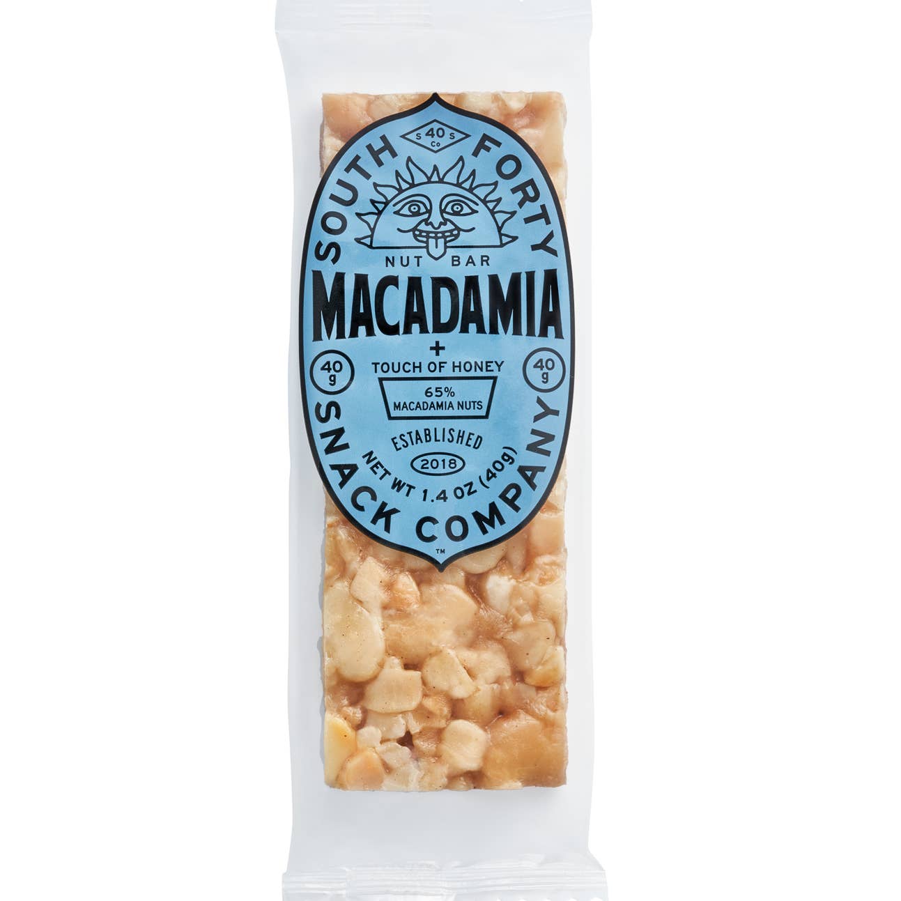 South Forty’s butter sweet macadamia nuts mostly come from the rich soils of Kenya, where farming is carried out by thousands of smallholder farmers. Many of the farmers we work with are currently switching from coffee to macadamia which is more lucrative. Our crunchy macadamia nut bars have just five ingredients and are 65% macadamia nuts. The perfect balance of nutty, sweet, and salty.