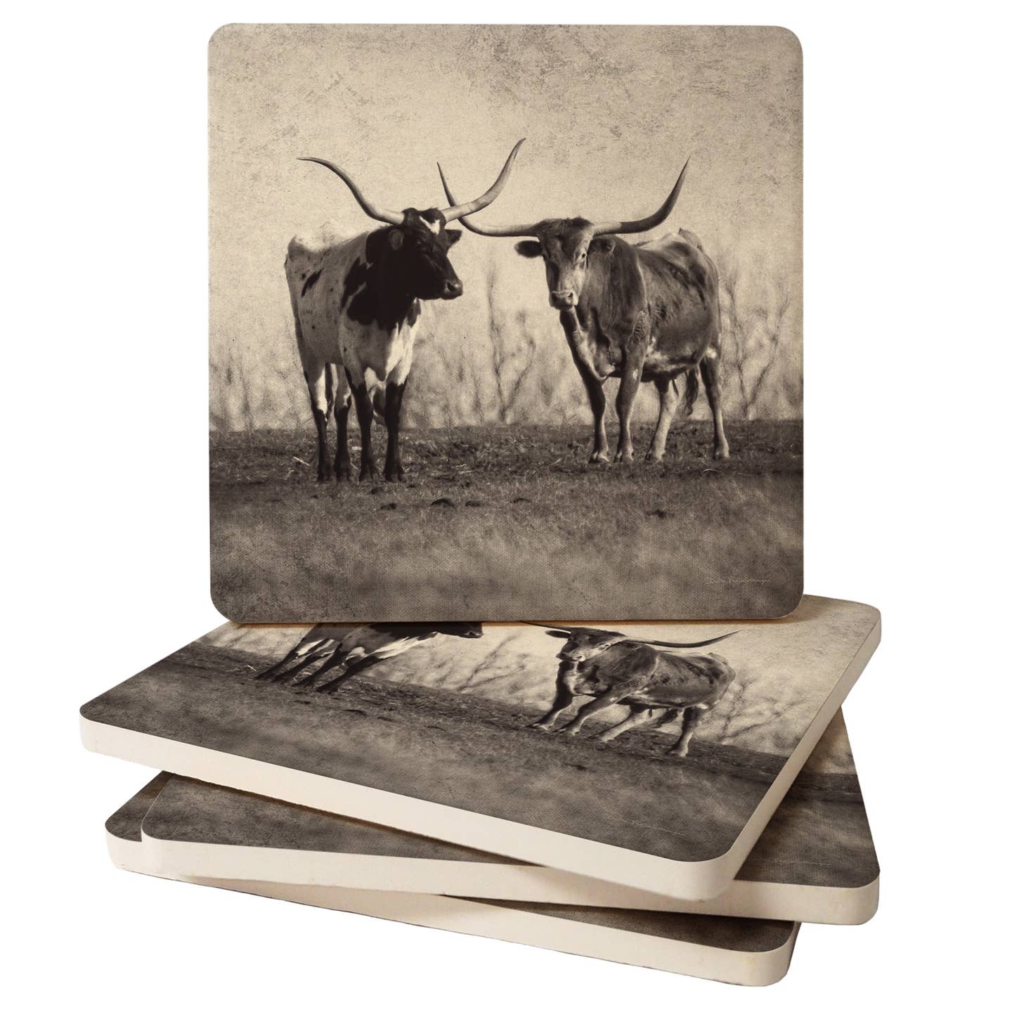 CoasterStone "Longhorns" 4pk Square Stone Coaster Set