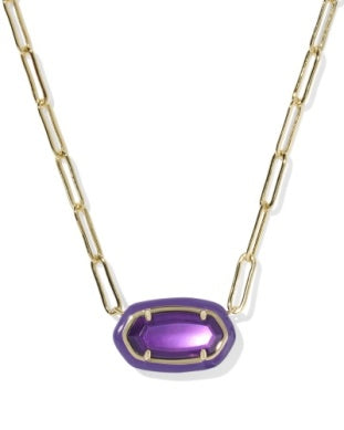 KENDRA SCOTT Elisa Enamel Frame Paperclip Necklace in Gold Purple Mother of Pearl