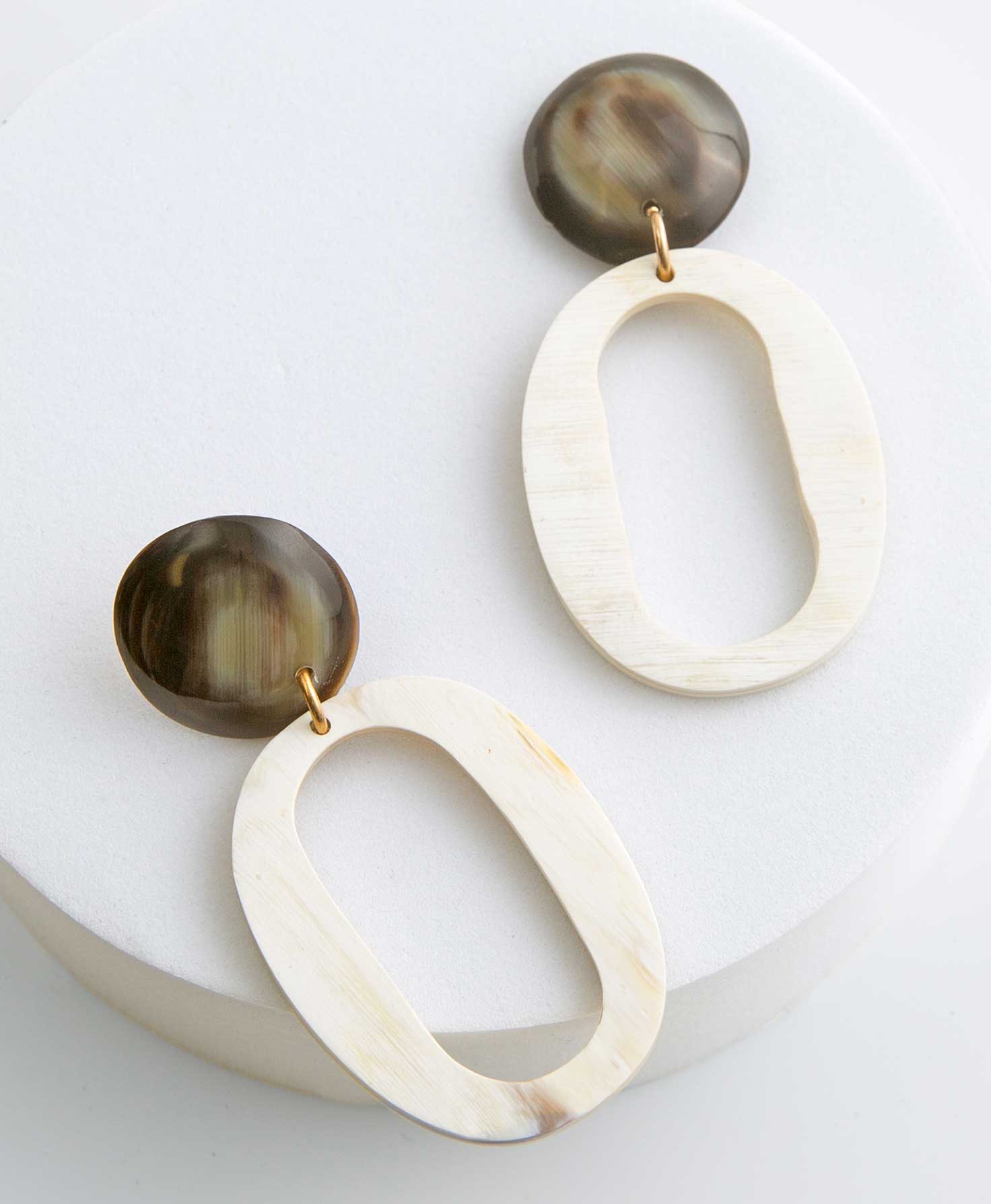 These elegant earrings feature classic gold plated brass studs and smooth hoops of polished cow horn. Because of their special natural material and handmade nature, each pair will be unique, with subtle variations in shape and hue.