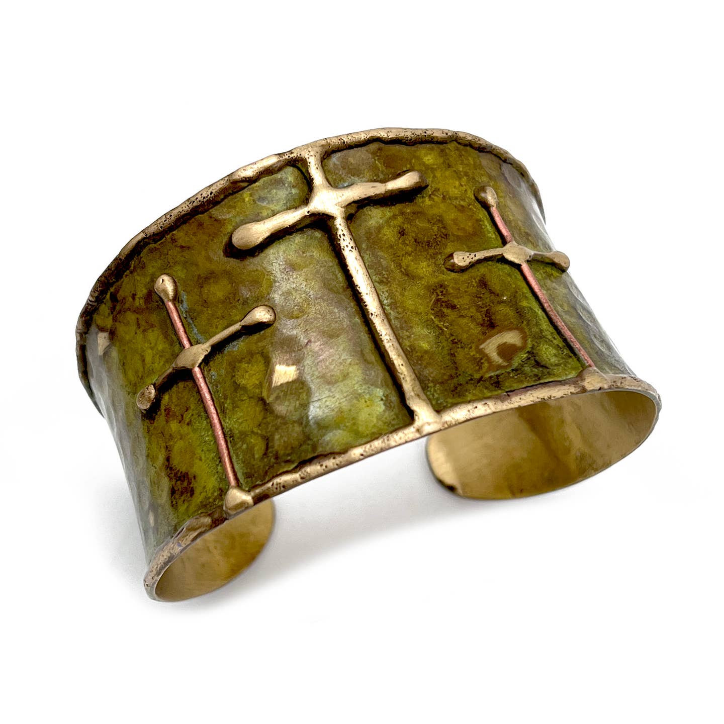 Anju Jewelry Brass Patina Cuff Bracelet -Green Crosses