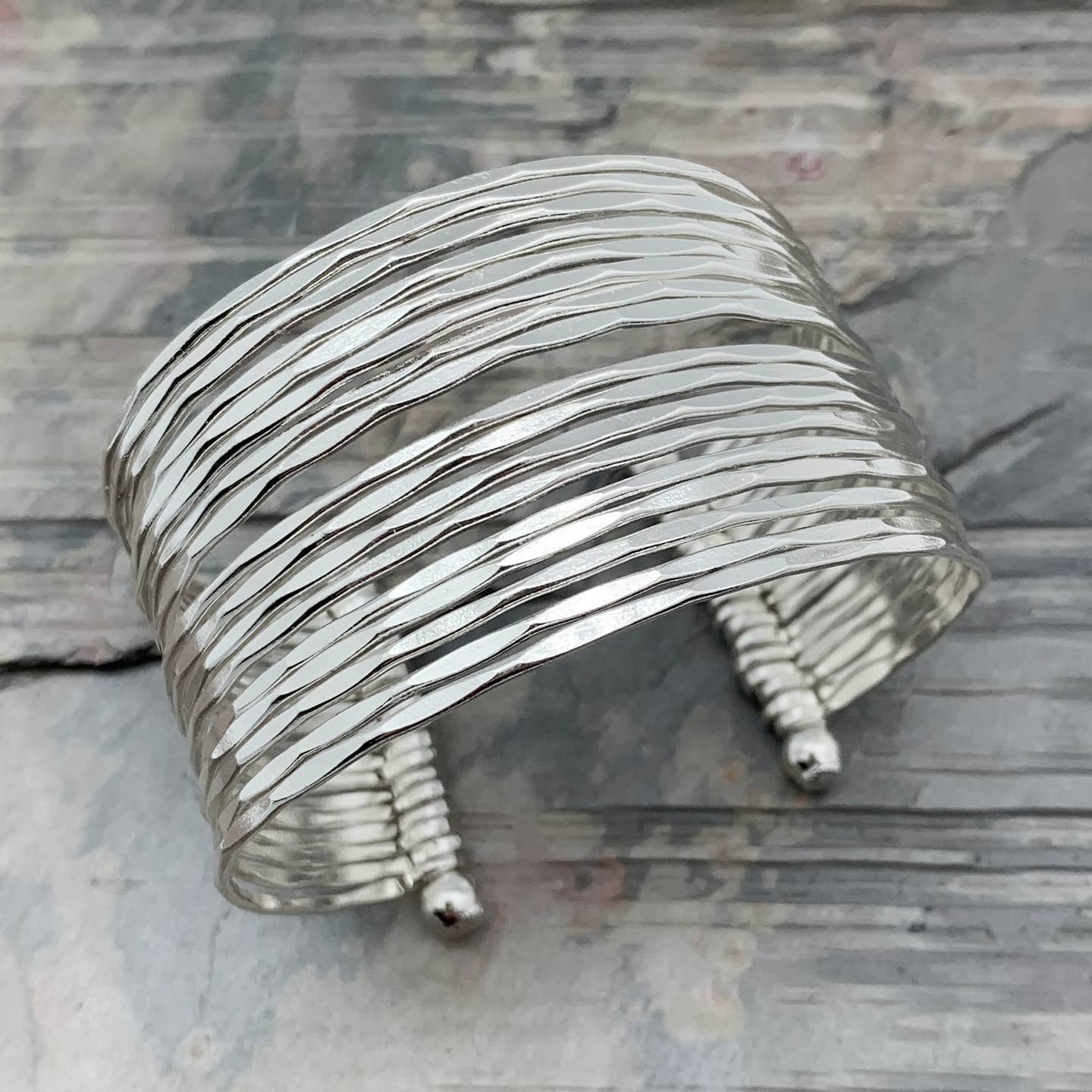 Anju Jewelry Silver Plated Adjustable Cuff Bracelet - Hammered Bands