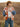 Checker Plaid Cardigan With Frayed denim Sleeve