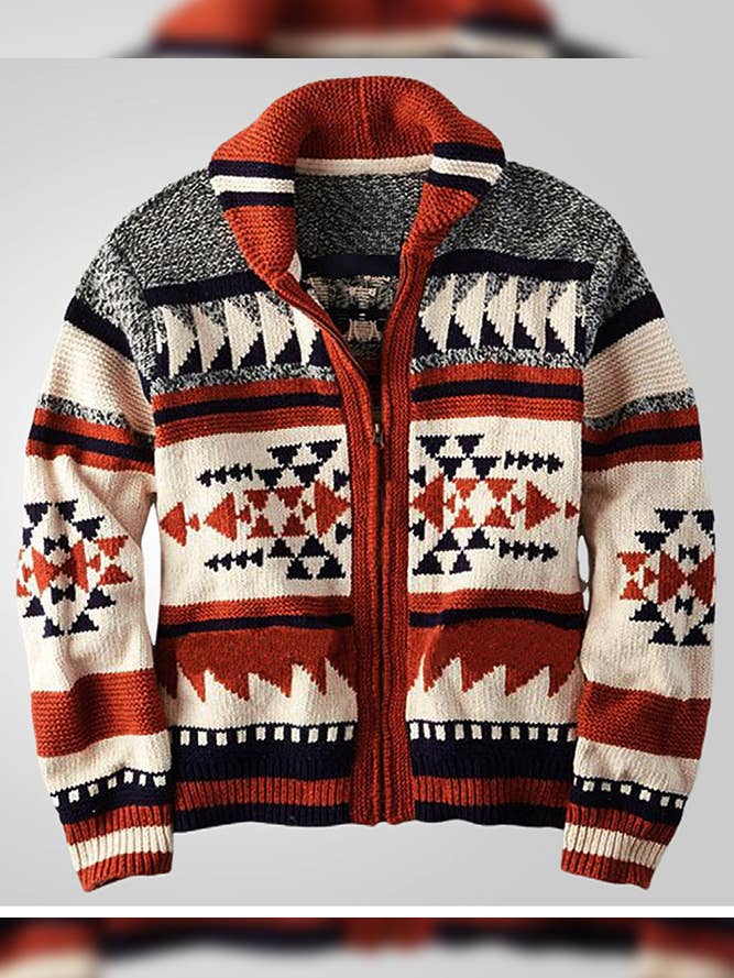 ZAND4 Men's Aztec Knitting Western Cardigan - Red